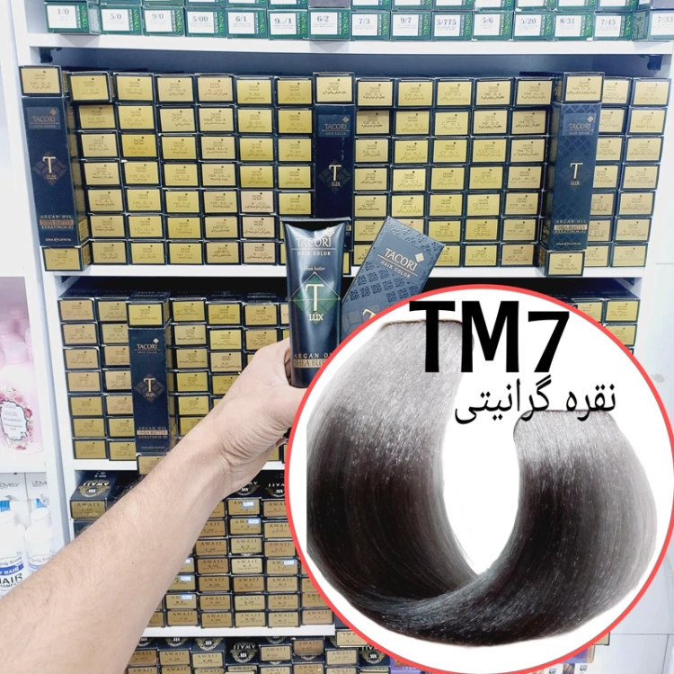 رنگ مو برندتاکوری نقره گرانیتی (TM7) حجم125میل حاوی کراتین و آرگان و شی باتر