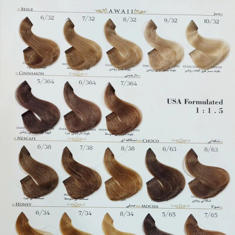 رنگ مو برند آوایی شماره(8.667) بلوند شکلاتی بنفش روشن حجم120میل حاوی کراتین و آرگان.ئاوایی.اوایی