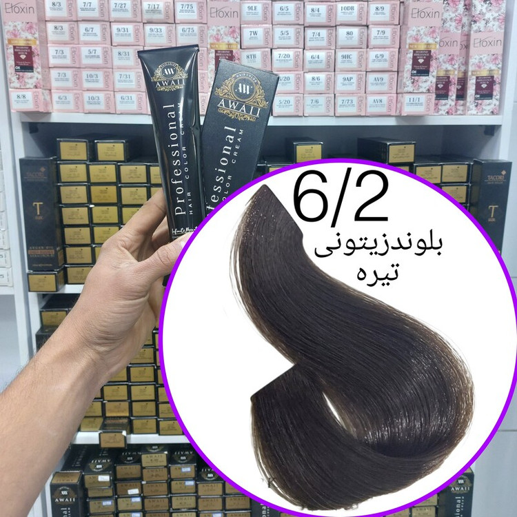 رنگ مو برند آوایی شماره( 6.2)بلوند زیتونی تیره حجم120میل حاوی کراتین و آرگان.ئاوایی.اوایی