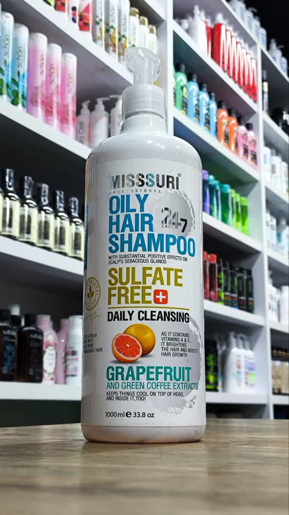 شامپو مخصوص موهای چرب 1000 میل میسوری حاوی گریپ فروت و چای سبز است و با دارا بودن فرمولاسیون ملایم و مواد مؤثره طبیعی قادر است موها را از چربی اضافی پاک نماید و باعث کاهش ترشح چربی مو شود. با استفاده از این شامپو موها به حالت نرمال نزدیک می شود و دیرتر چرب می شود و نیاز به شستشو کاهش می یابد. وجود مواد حالت دهنده باعث می شود تا موها کاملا حالت پذیر بوده و به راحتی فرم دلخواه را به خود بگیرند. این شامپو دارای خواص ضدالتهاب و التیام بخش است و عصاره چای سبز به کاهش وکنترل ترشح چربی پوست سر کمک میکند و همچنین وجود عصاره گریپ فروت غنی از ویتامین C باعث شفافیت و شادابی مو نیز میشود.