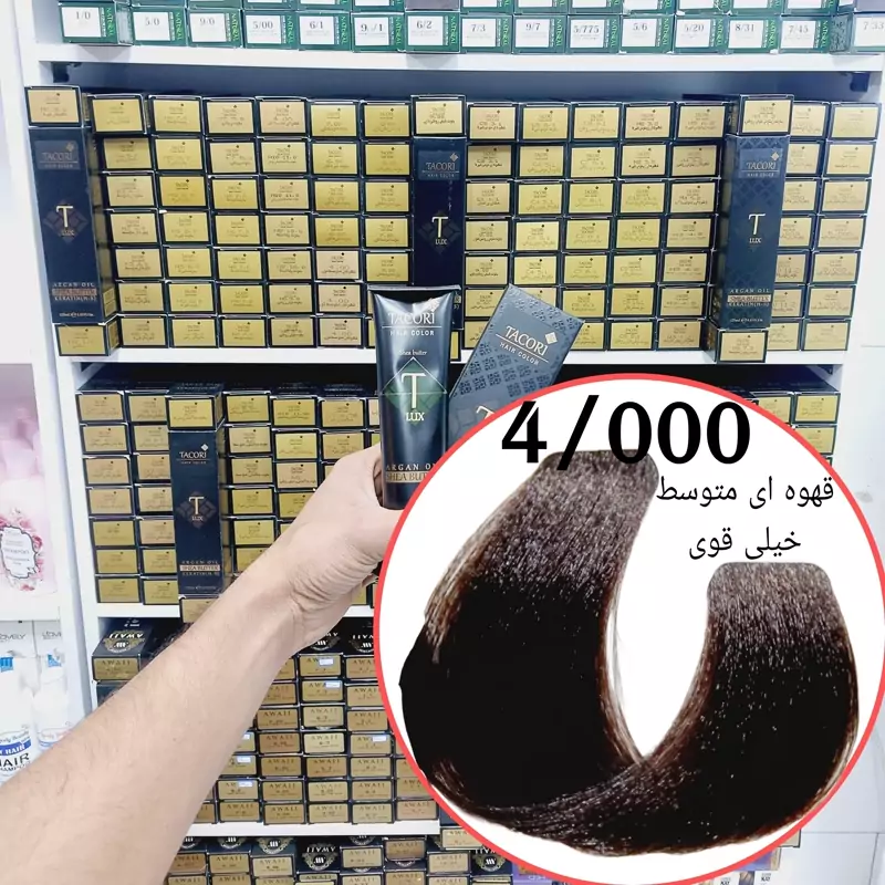 رنگ مو برندتاکوری قهوه ای متوسط خیلی قوی (4.000)حجم125میل حاوی شی باتر آرگان وکراتین