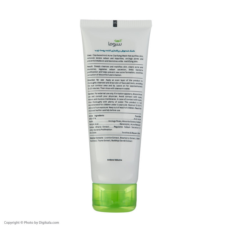 راهنمای استفاده: لایه ای یکنواخت از محصول را روی پوست تمیز صورت و گردن به غیر از اطراف چشم و لب بمالید و پس از 15 الی 20 دقیقه با آب ولرم بشویید.