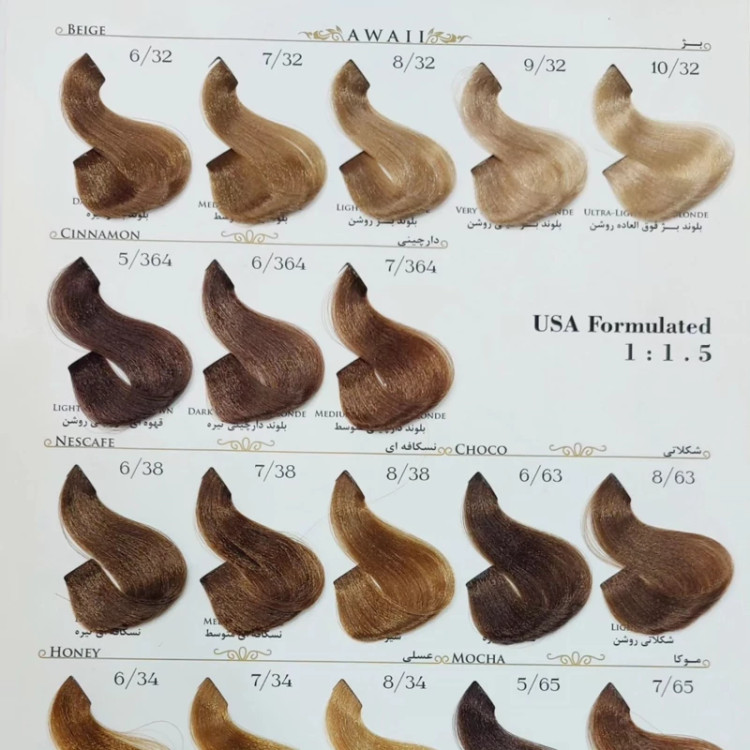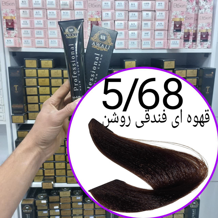 رنگ مو برند آوایی شماره(5.68) قهوه ای فندقی روشن حجم120میل حاوی کراتین و آرگان.ئاوایی.اوایی